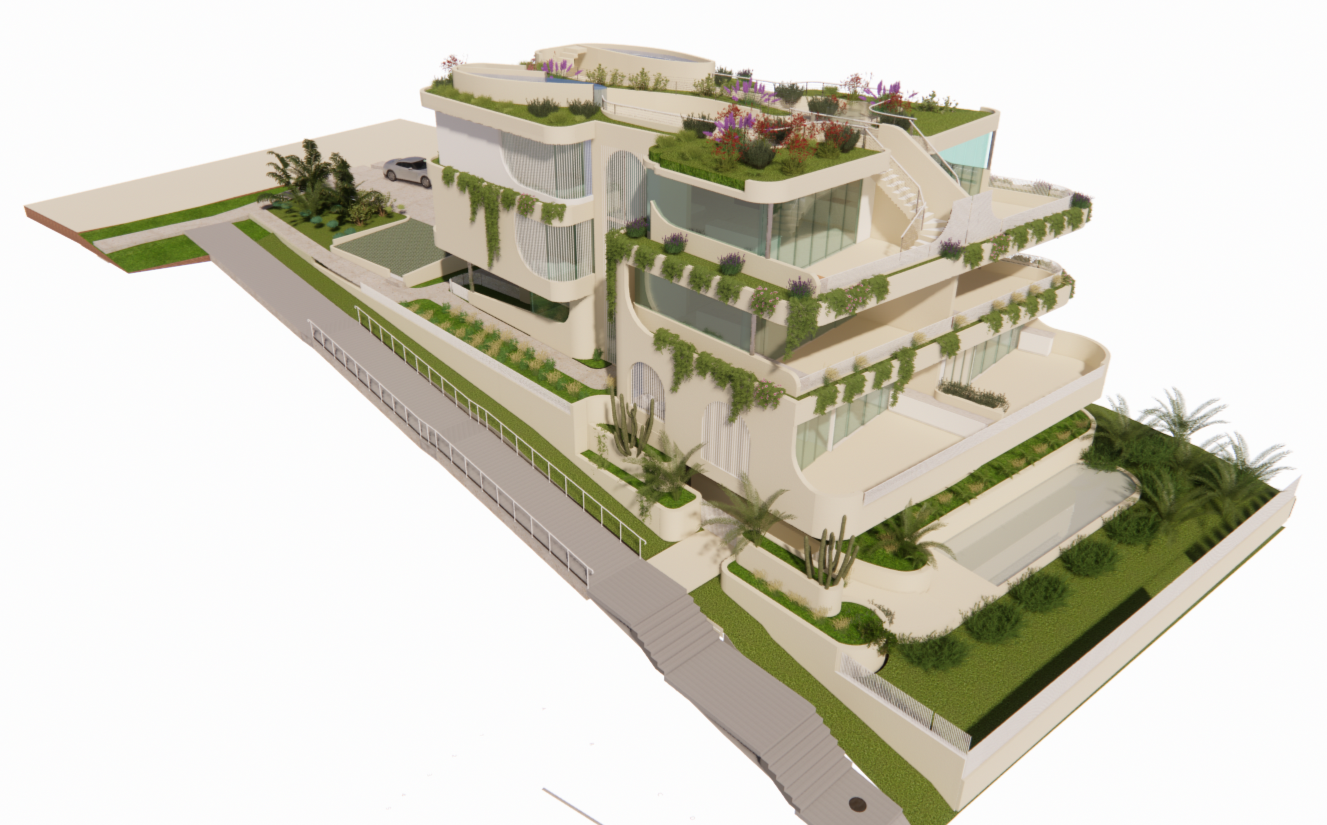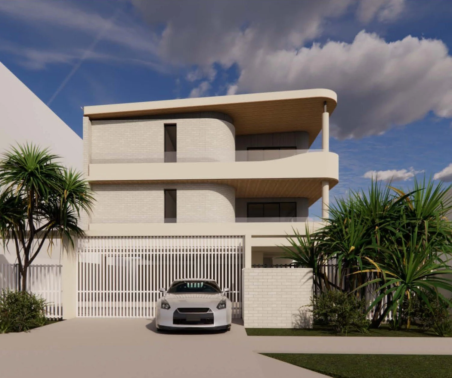 This gorgeous greenscaped building features a modern curvilinear form that sets it apart from its more angular neighbours. These softer edges and organic form beautifully reflect the natural Sunshine Beach setting.